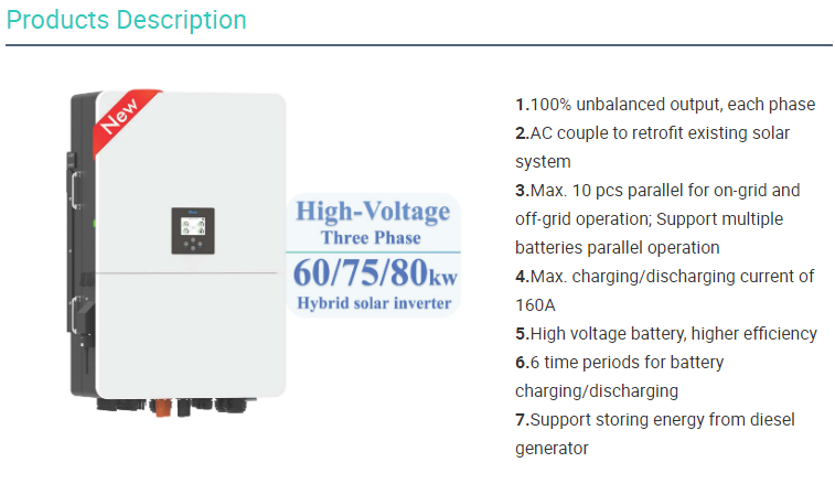 Casa /15kw-80kw high voltage hybrid inverter /In Stock Deye 60kW 75kW 80kW Hybrid Inverter for Hybrid Solar Energy Storage System Commercial and Industrial Use